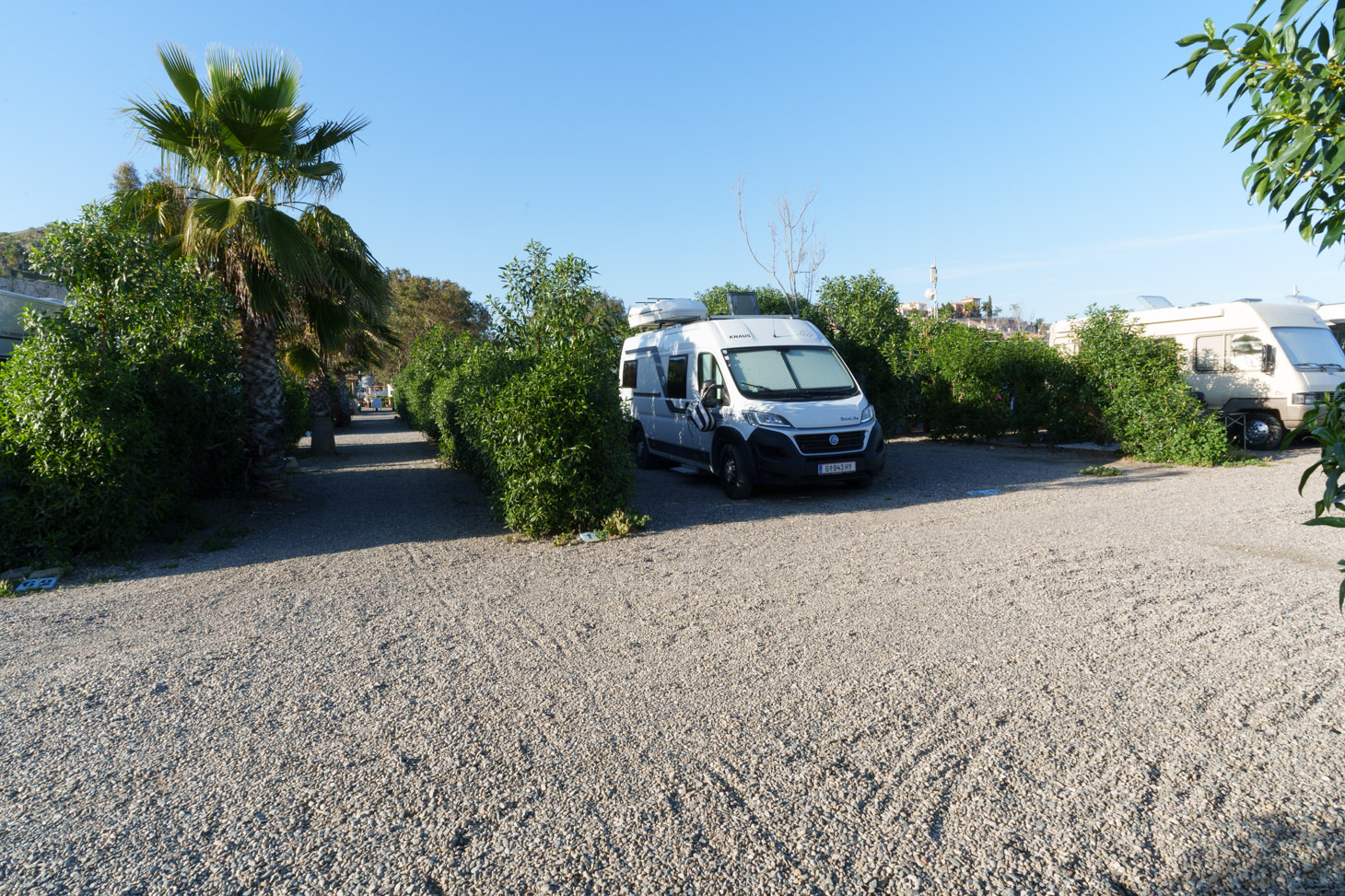 Denn der Stellplatz liegt an der Stadtautobahn, die aus Málaga in die Vororte des Ostens führt, und ganz hinten am Platz fährt einem jedes Auto quasi direkt über den Schlafplatz.